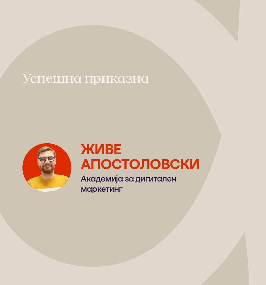 Разговараме со Живе Апостоловски, студент на академијата за дигитален маркетинг кој преку Challenge Day на академијата за дигитален маркетинг во моментов е дел од