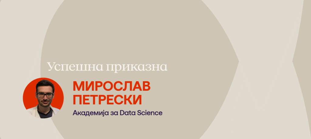 Како што напоменав претходно, љубопитноста ме направи да гледам на проблемите на еден поинаков начин, па потоа посакав да гледам и во блиска иднина, но за тоа ми требаше да научам за Data Science. Тука доаѓа Avenga Academy, а за тоа беше најзаслужен професорот Александар кој ме разбра уште од првиот момент што сакам да научам, што планирам да постигнам и ме убеди на неколку начини дека можам да го постигнам сето тоа. Не погрешив воопшто!