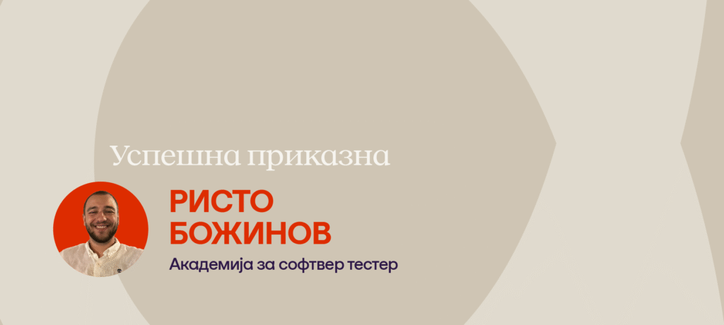 Пред самото завршување на академијата, почнав со апликации во потрага по нова позиција како софтвер тестер. Знаев дека тоа што сакам да го работам е автоматското тестирање, па потрагата кон позицијата беше подолга од очекувано, но на крајот вредеше целосно вложениот труд. Во моментов работам како QA Automation Engineer во Proton Privacy By Default. Дополнително, се вработив и во СЕДЦ како асистент при академијата за софтвер тестери и имав можност да им помогнам на голем број на студенти со потешкотиите кои се справуваа во текот на нивните студии.