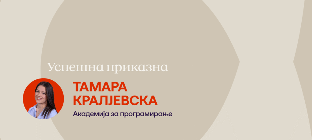 Запознајте ја Тамара нашиот алумни студент од Академијата за Програмирање, која по завршувањето на академијата се стекна со можност за пракса токму во Avenga. За нејзиното искуство од академијата и праксата прочитајте подолу .